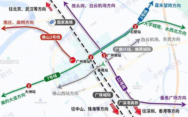 5 高铁+3 城轨无缝链接大湾区及国内9省,高铁可实现8小时辐射全国,3小时华南商圈,48 分钟直通香港九龙;城轨可实现 1 小时辐射大珠三角,半小时广佛同城,58 分钟直通澳门;广州南站4地铁交汇+4快速,15分钟直达南村万博CBD,30分钟直达珠江新城CBD。