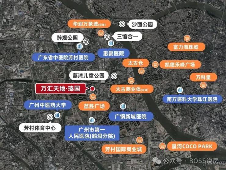 周边规划3座潮奢商业地标:全国首座双太古(在建中)、26.9万㎡华润万象城(在建中)、18万㎡理想花地城市级购物中心(在建中),未来将成为广州西部的商业核心。