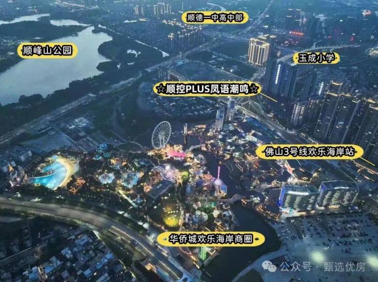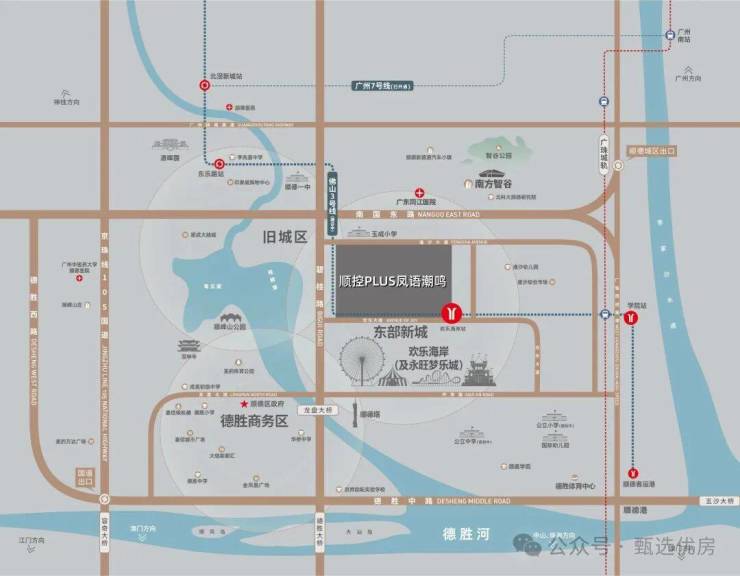 于顺德主城而言,真正的「黄金三角圈」,其实就在大良欢乐海岸周边约1公里范围内,也就是顺控PLUS·凤语潮鸣所处地段。
