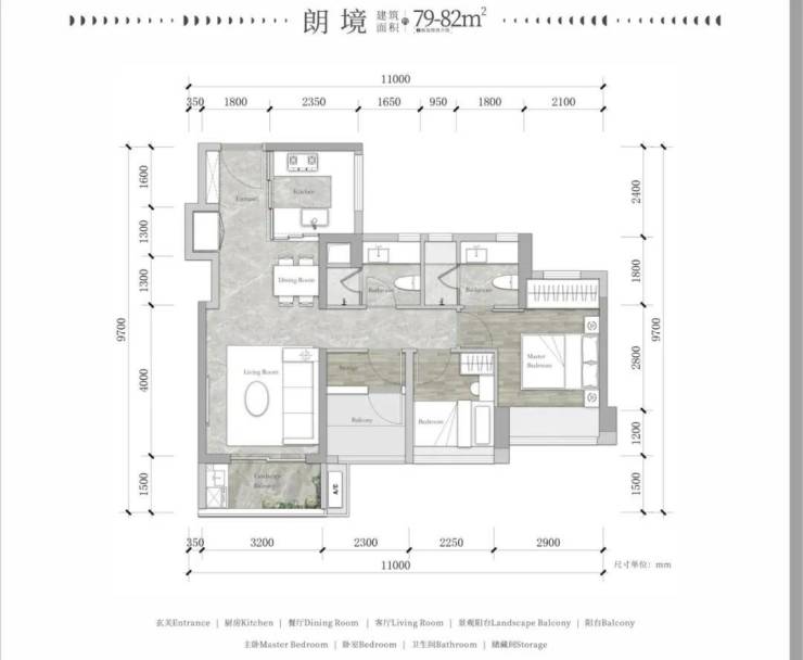 >> 建面约80㎡2房2厅2卫+1灵动空间 <<