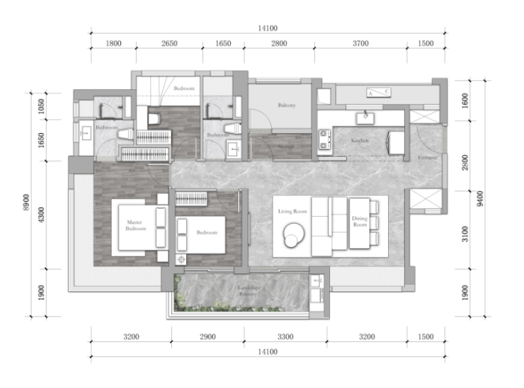 酒店式主卧套房,独立卫浴,步入式衣帽间,经典与潮流随心切换
