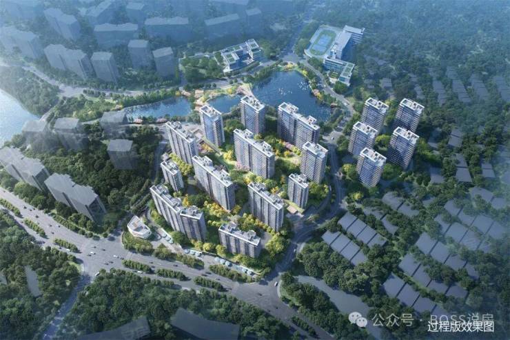 45-52米的低密度小高层,按照“前低后高”的建筑高度控制,形成朝向湖区梯级跌落的设计,大地块西北向望湖景,小地块西向往湖景。