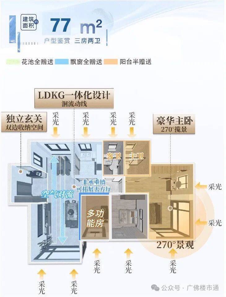 新规产品,将空间发挥极致,建面约77-91㎡三四房,全双卫设计,打造南北通透低密精奢小户,真正做到高赠送高使用