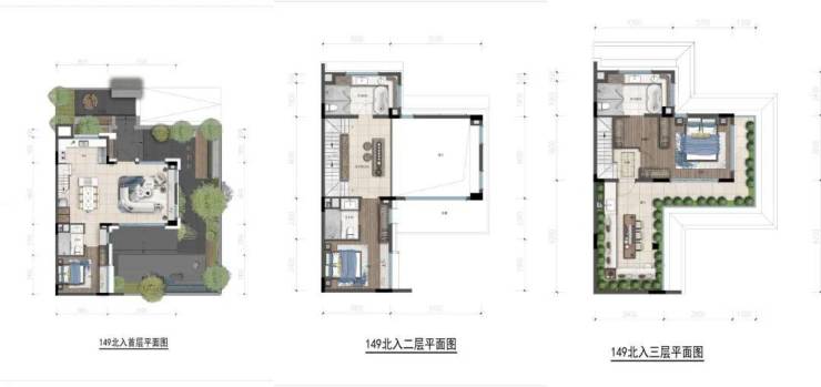 户型包含149㎡(南入+北入)、175㎡(南入+北入)、198㎡(南入+北入)