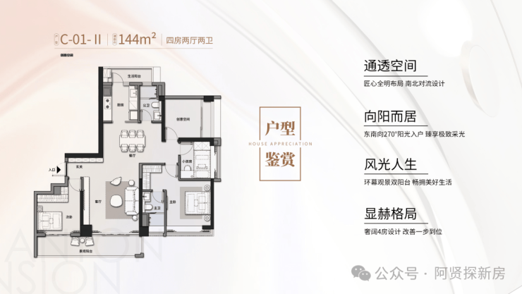 C-01-II 建筑面积约144㎡ 四房两厅两卫