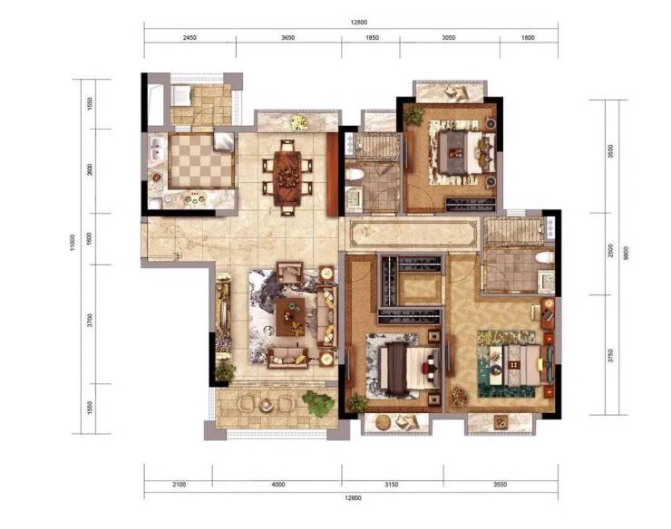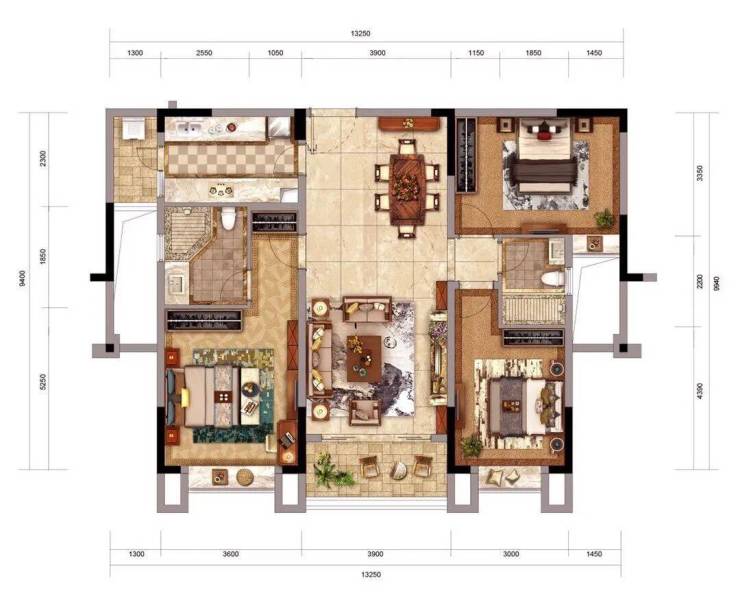 255㎡-四室两厅|三阳台、四飘窗,大生活空间
