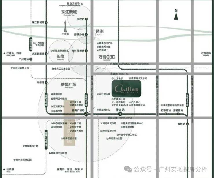 周边5公里范围内有三甲广州市番禺区中医院和二甲番禺区何贤纪念医院。