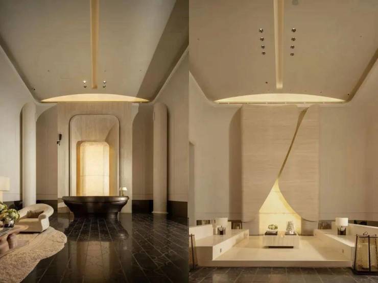 项目创新打造的约2500㎡立体下沉式会所已实景呈现,半开敞式空间将自然光引入私宴厅、健身房等功能空间,悬浮结构设计使其与周边景观浑然一体。