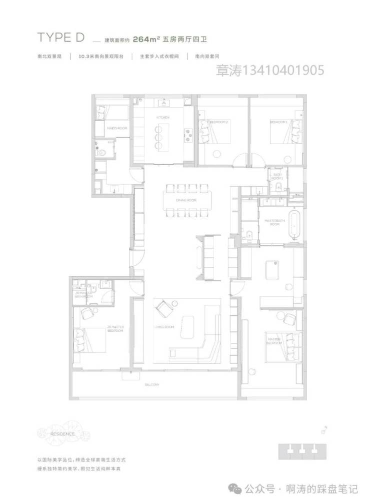 【264㎡户型】10.3米南向景观阳台-南北双景观-主套步入式衣帽间-独创灵动岛设计,生活场景多重切换