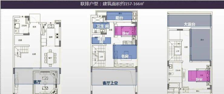 楼盘目前在售157~166平方米的联排别墅,总价约300万-400万元/套,均价约2.3万-2.4万元/平方米。