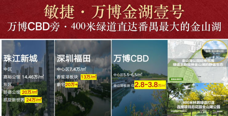 敏捷地产,作为番禺的先驱者,深耕番禺,不仅打造出万博商业门户——番禺敏捷广场,还给番禺贡献24座理想人居作品。2025年,敏捷地产从总部地块出发,在金山湖畔,为万博CBD筑写湖居壹号作品。