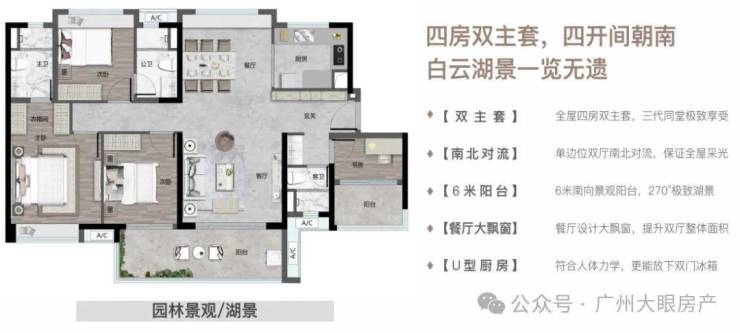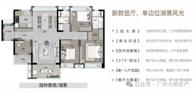 【140㎡四房二厅二卫】四房双主套,6米大阳台,望湖极致景观面!!