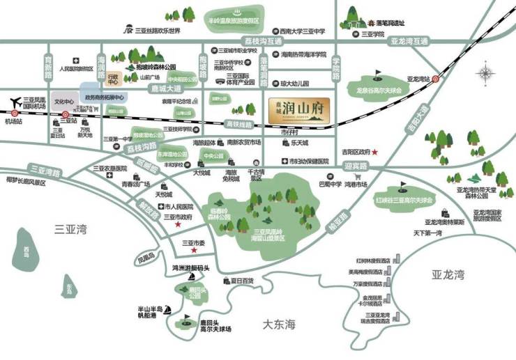 ✨【核心价值1】✨『 区位 』城市央芯新起点 海纳城市资源配套鹿城·润山府项目落座鹿城大道之首,毗邻CBD总部经济圈,亦得利于抱坡新城政策红利和配套资源,一城精华尽数海纳。✨【核心价值2】✨『 交通 』四横三纵四通八达 陆铁空立体交通项目位处四横三纵立体交通路网核心节点鹿城大道• 距三亚动车站仅6公里• 距离环岛高速G98荔枝沟互通仅1公里,快速通达全岛全市、各大湾区• 四横:鹿城大道、荔枝沟路、迎宾路、海南环岛高速• 三纵:落笔洞路、学院路、抱坡路• 公交体系:7个公交站点、8条城市公交线路✨【核心价值3】✨『 教育 』十五年全程教育配套 家门毗邻校门鹿城·润山府位处三亚教育资源集中区域,1.5公里范围内覆盖十五年全程优质教育配套,从琼大国际幼儿园、南亚幼儿园、三亚第三幼儿园等近十所幼儿园,到南新小学、荔枝沟小学、荔枝沟中学、巴蜀中学、华侨学校,以及西南大学三亚中心、热带海洋学院等等,从幼儿启蒙到学业进阶全程护航孩子远大梦想与锦绣前程。