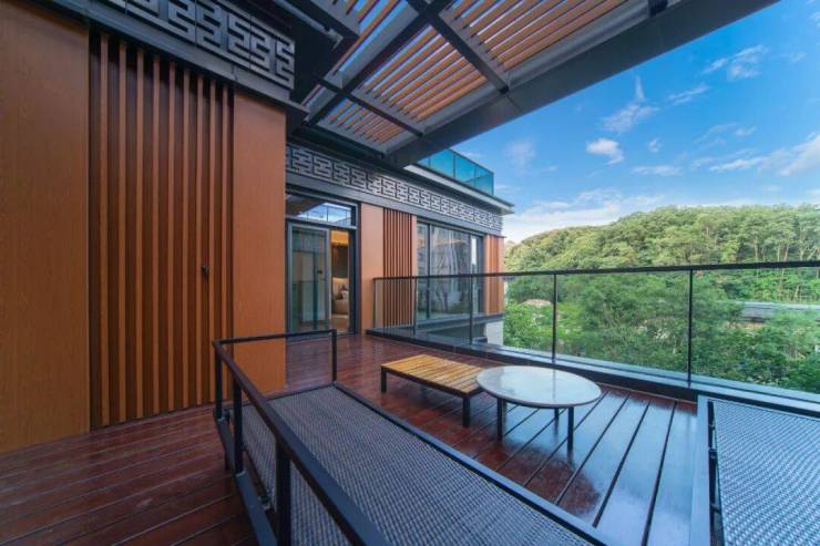 创造性以层层错落的梯田式排布,最大化保留原生树木和原生态地貌,形成错落有致的高差线条。