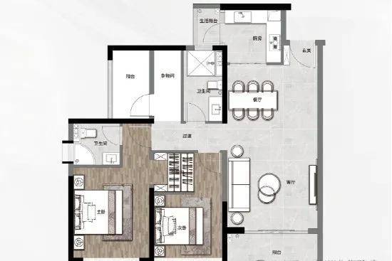 超6m超宽景观阳台,享大夫山湖头排景观;全屋飘窗面积全赠送,双阳台面积半赠送,实用率超80%