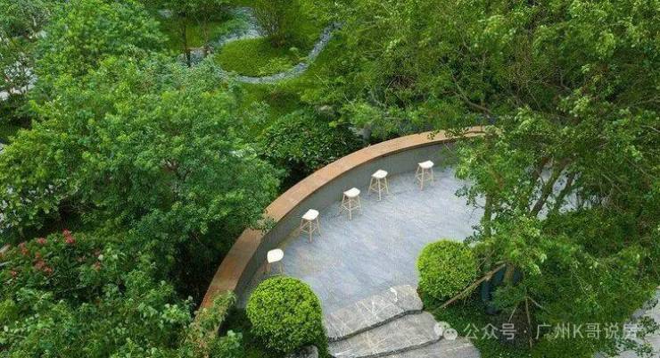 天河源筑不同,它选择用一个节点集中拆解,就如下图,项目凭借地势,打造了一座双层立体花园,手法大胆而新颖。