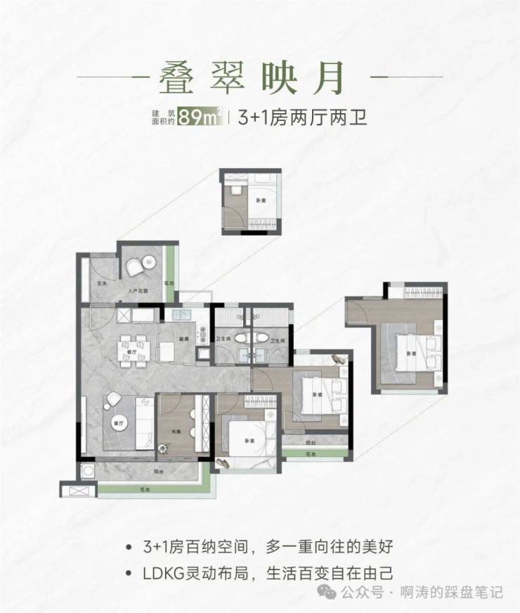 ⚜【约89㎡ 3+1房2厅2卫】