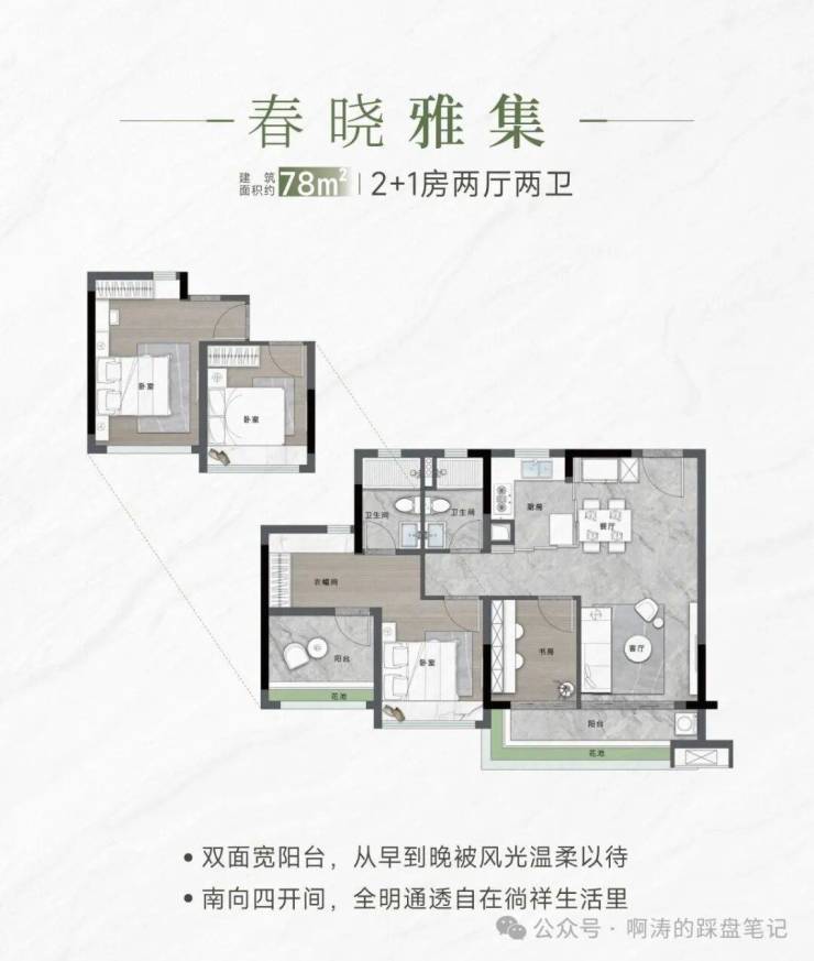 ⚜【约78㎡ 2+1房2厅2卫】