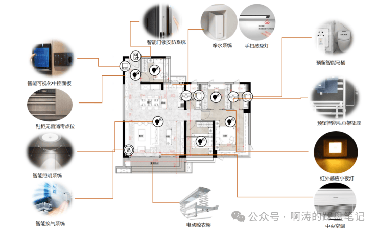 作为广州市第三个与华为合作的项目,项目交标标配华为鸿蒙智能家居系统+全屋新风系统,中控屏一键调控不同场景模式下所需的室内湿度、温度及室内灯光条件,在住宅生活方面采用智能马桶、净水系统、红外感应小夜灯、电动晾衣架等,配备全屋新风系统,为居者提供24h洁净居家环境。