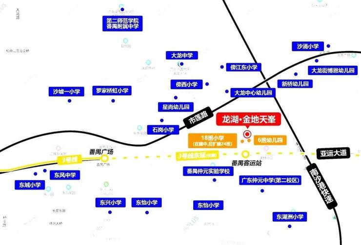 项目位于番禺广场板块,家楼下就是3号线地铁东延段傍江站,现在东延线已经开通了,而且项目还引入了广州首座龙湖天街商业,目前已经动工,
