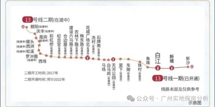 项目距离地铁13号线白江站地铁约500米、距离TOD交通枢纽中心约800米,从白江站出发,地铁2站可达黄埔,8站天河。