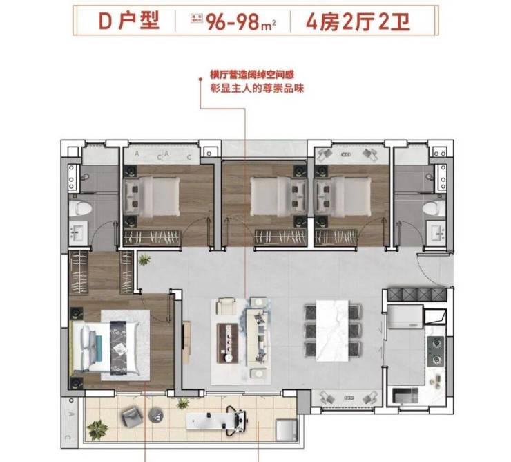 【约96-98㎡4房2厅2卫户型鉴赏】