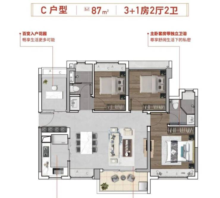 【约87㎡3+1房2厅2卫户型鉴赏】