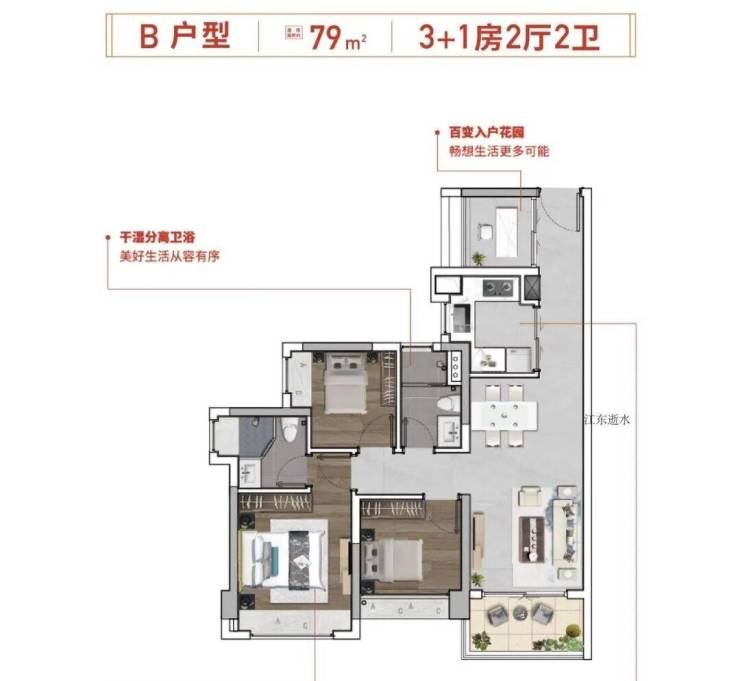 【约79㎡3+1房2厅2卫户型鉴赏】