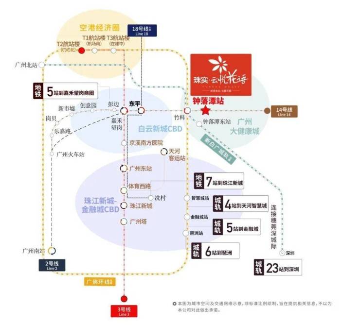 2城轨:广佛环线东段(预计2024年通车),4站直达天河智慧城,5站到金融城,6站到琶洲,新白广城轨(预计2024年通车)1站直达白云机场。