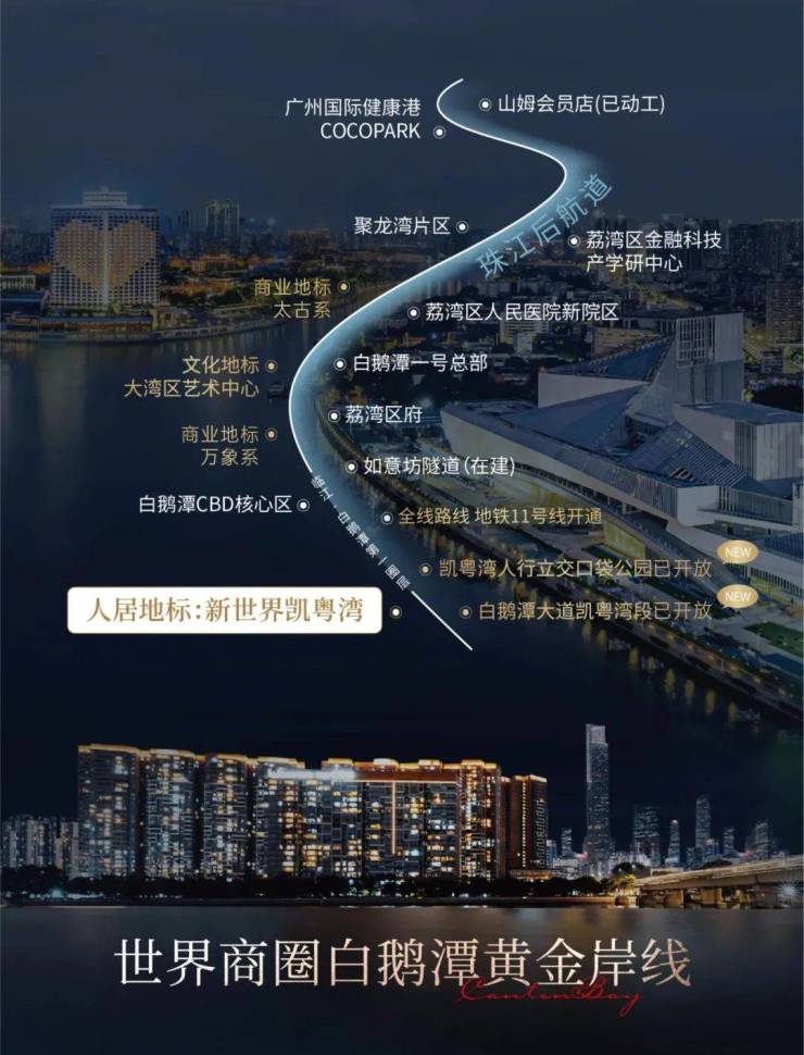 作为白鹅潭三江交汇处的约120万方封面大盘,新世界凯粤湾多年来深度亲融城市与人群,以超强的能动性、影响力、号召力、兑现力,助力白鹅潭升级迭进,助推城市生活品质升级。