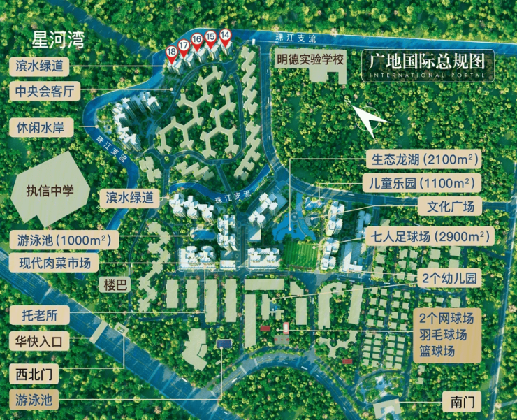 曾经的广地花园和祈福新邨、华南碧桂园、广州雅居乐花园、广州星河湾、锦绣香江花园、南国奥林匹克花园、华南新城,被誉为华南板块的八大金刚。