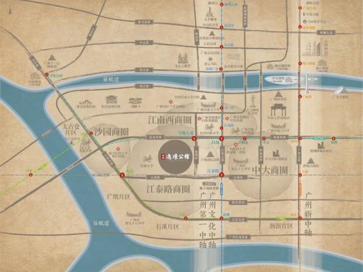 中冶·逸璟公馆项目地处广州市区海珠中心、江南大道之上的核心区位,尽享海珠区三条黄金居住走廊的价值汇集。