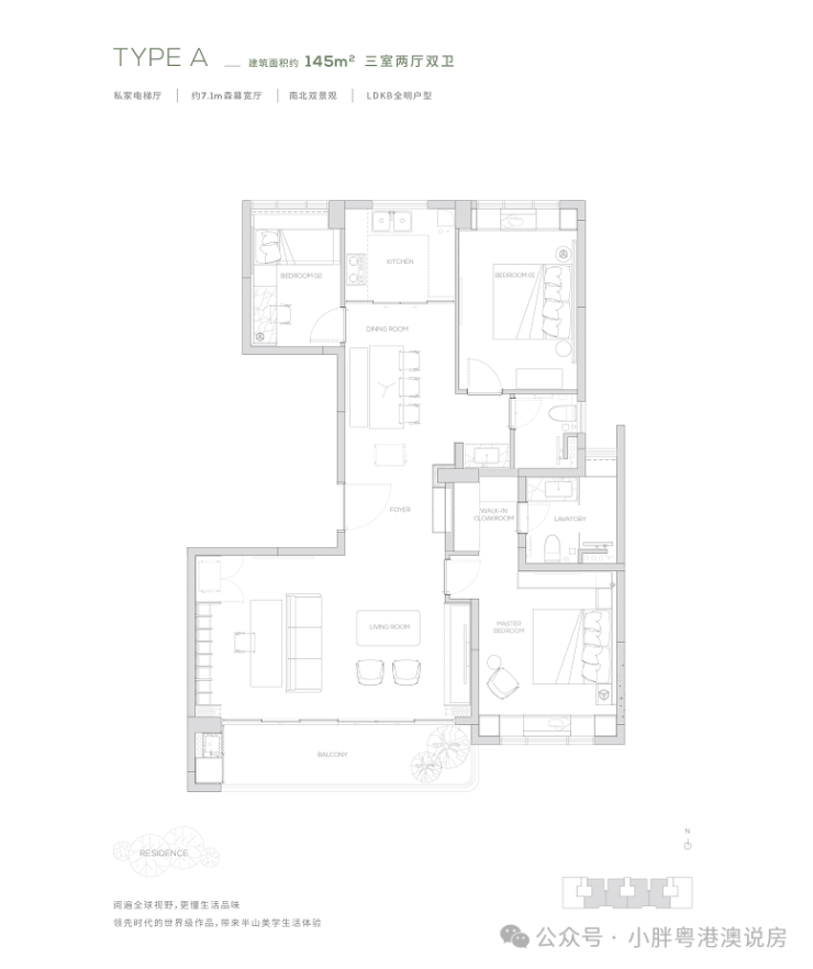 【145㎡户型】独享私家电梯厅-约7.1m²森幕宽厅-LDKB全明户型