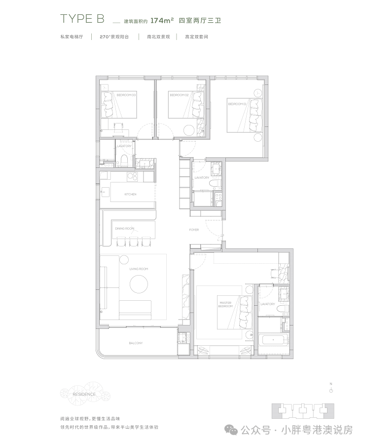 【174㎡户型】独享私家电梯厅-270度环幕观景阳台-高定双套间