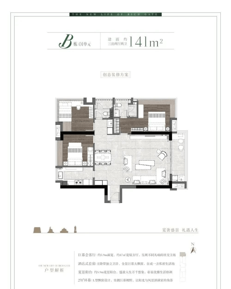 【户型产品】:约93-196m²三至五房