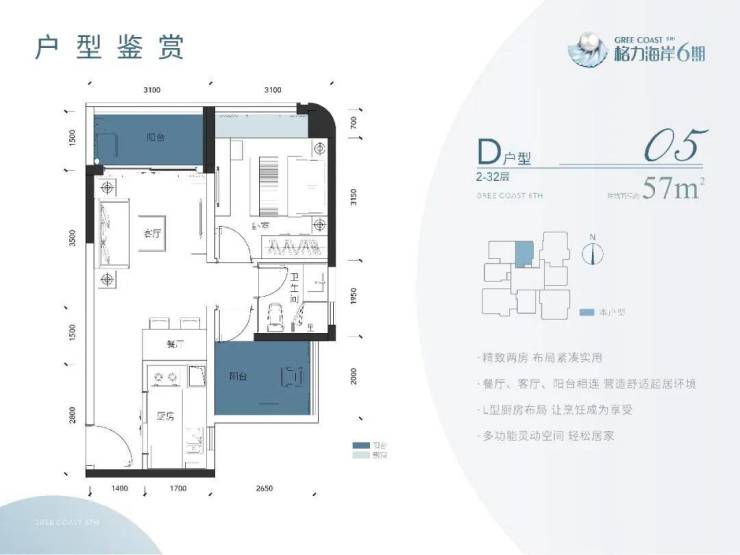 格力海岸6期以现代简约设计风格,结合人性化善住精装标准,涵盖品质、舒适、灵活、便捷等种种生活细节,全方位提升生活品质。建筑面积约57-114㎡的多元户型,无论是刚需还是改善,都能找到适合自己的空间。