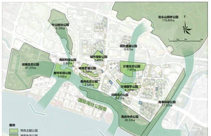 构建“5大城市生态公园 + 9大特色主题公园 + 7个口袋休闲公园”,打造“300M见绿 , 500M见园”的公园城市。