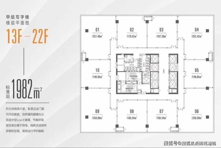项目在办公空间设计上融入极致巧思,兼顾实用性与商务格调,打破传统写字楼空间局限,最大化利用每一寸空间,适配企业多元办公需求,彰显企业实力与格调。项目打造10米层高奢阔大堂,恢弘大气,一进门即彰显企业高端形象,提升商务接待的仪式感与格调,成为企业的“门面担当”。梯户比采用8梯10户的科学配置,实现员工通勤分流有序,避免早晚高峰拥堵,大幅提升办公效率,节省员工通勤时间。办公空间规划合理,动线流畅,无浪费空间,146~257㎡单套户型可灵活分割,既能满足独立办公需求,也能组合成大空间,适配部门分区、会议洽谈等多元场景。同时,项目配备24小时可独立控制VRV空调,节能环保,可根据企业办公时间灵活调节,避免能源浪费,降低企业运营成本,实现实用与格调、节能与高效的完美兼具。