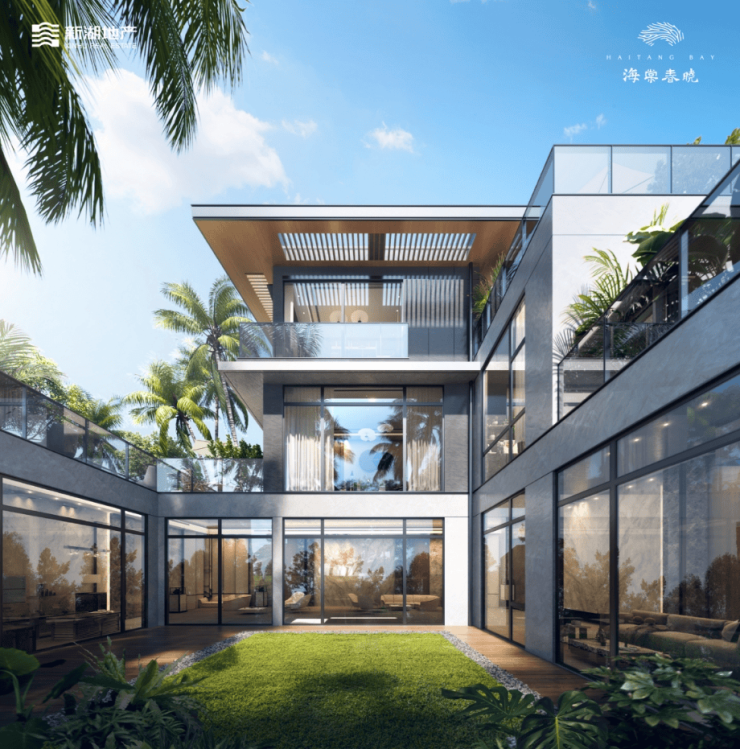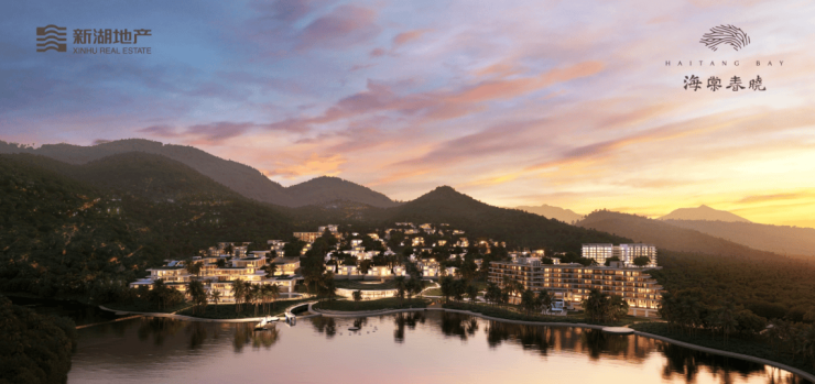 (建筑设计效果图)新湖·海棠春晓项目位于海南省三亚市海棠区,三面环山,一面临海,周边森林公园、高星级酒店环绕,地理位置优越。
