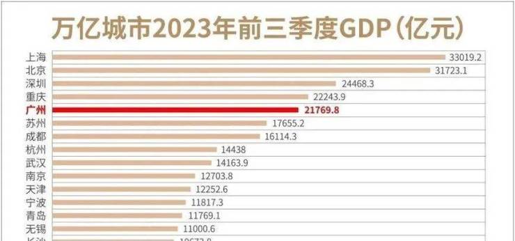 今年全国24座“万亿城市”GDP三季报表明,广州前三季度GDP为21769.84亿元,同比增长4.2%,排名第五。作为唯五破2万亿的城市之一,不同于其他直辖市、经济特区,广州是唯一的省会城市。