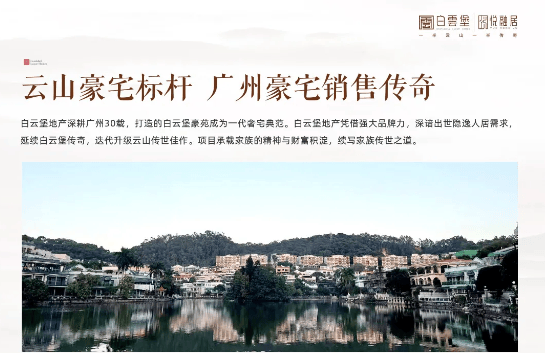 项目特色 项目位于白云山西麓半山之上,私藏约220亩山体公园,与白云山零距离接触,独享天然大氧吧。项目容积率仅0.8,为广州罕见的低密度半山豪宅,物业类型包括180-330㎡大平层及180-500㎡叠院。