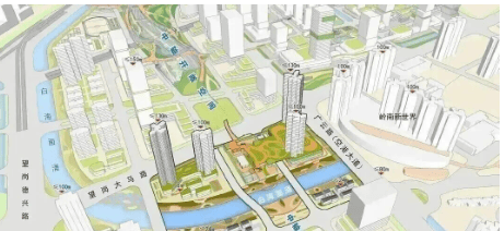 虽然地块不大(仅9.6万㎡),但通过立体化设计和架空层利用,有效提升了公共空间体验。高层还能远眺白云山,生态资源加分。
