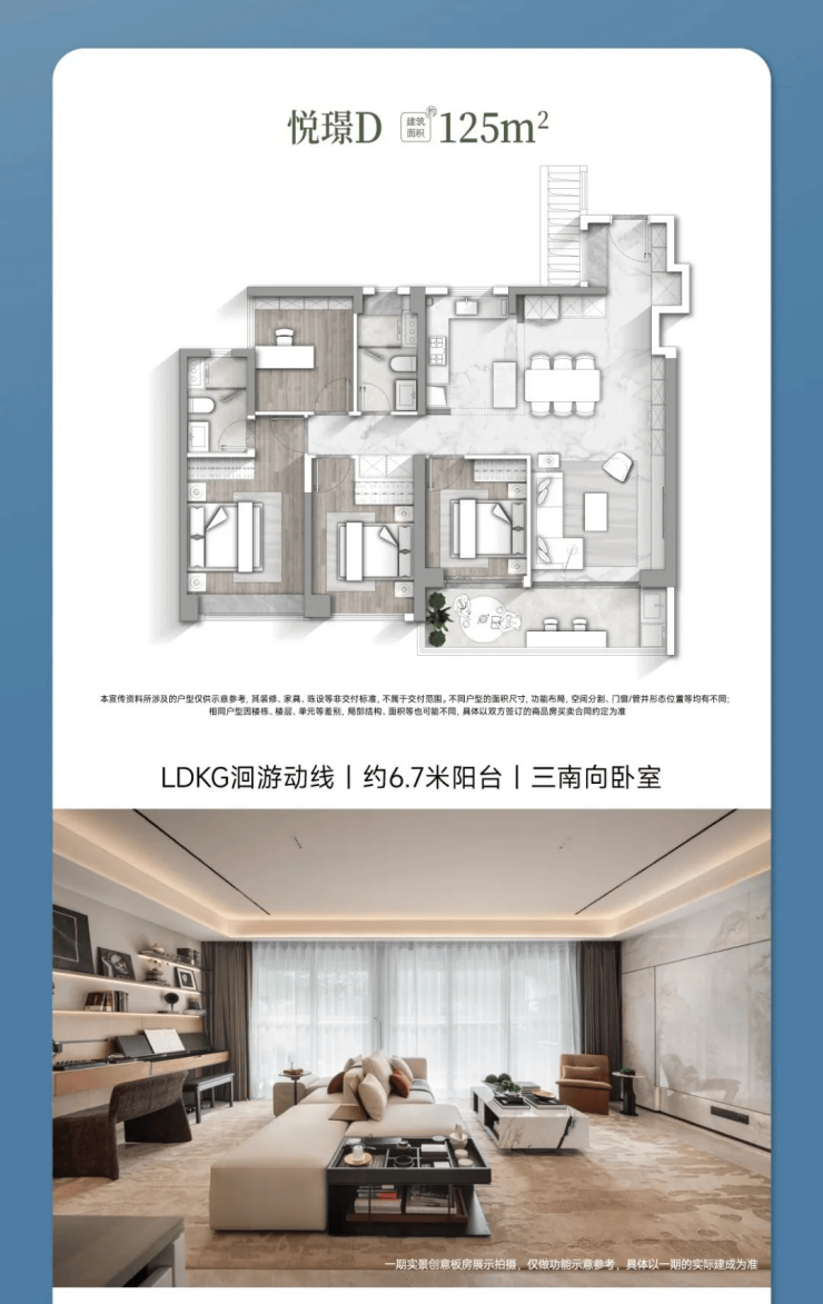 LDKG洄游动线,三南向卧室,悦享四季,厅卧空间灵活改造,连接约6.7米阳台,适配全生命周期,半开放式中西厨房,多样生活随心而动,玄关大通柜+走廊置物柜人性设计,轻松收纳全家兴趣