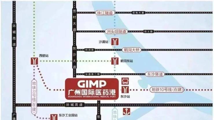 隧道:东沙隧道约5-10分钟畅达海珠区(建设中)、洲头咀隧道、珠江隧道贯通珠江两岸。