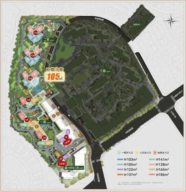 项目前阵子加推了二期的9栋,二期是超新规户型,实用率能去到120%左右,比较火爆的是105㎡的户型。