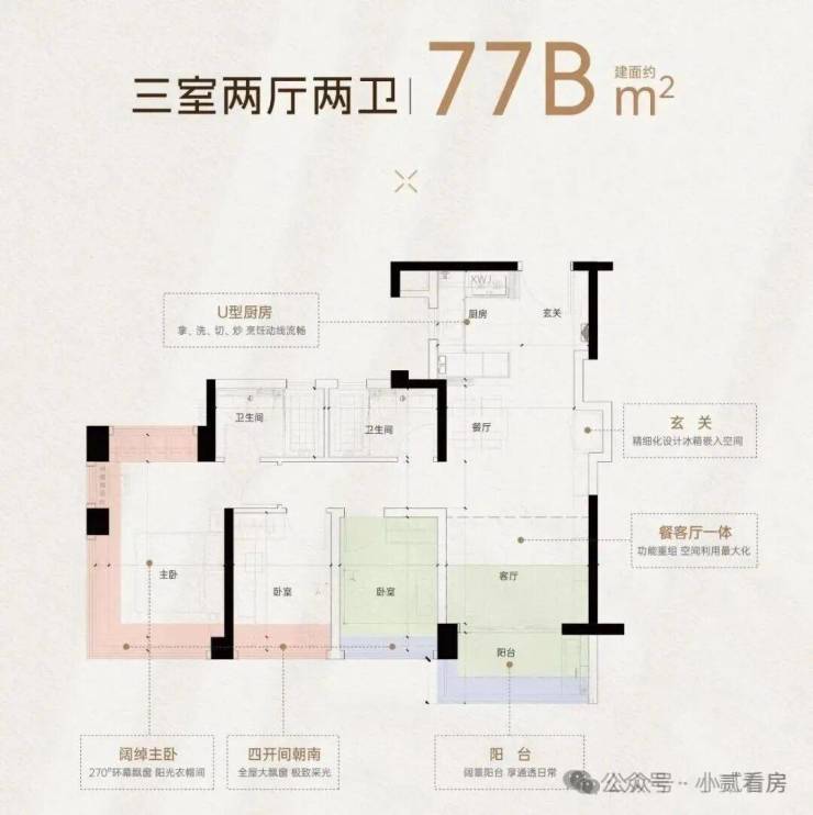 项目户型涵盖了约77-135㎡三至四房,整体约127-137%使用率,首推9#和1#,33层高,两梯五户。