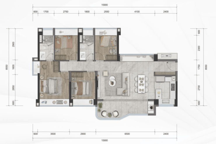 其中,商业配套尤为引人瞩目。滨海润府自带约10万平方米的商业空间,规划打造万象系滨海度假购物天地,计划引入超过200家商铺,其中包括众多国际知名品牌。