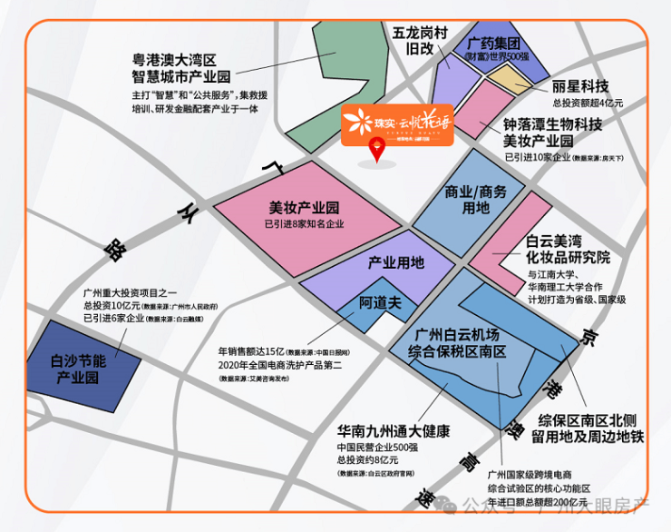 新白广城轨(在建中)1站白云机场,南向通达东莞和深圳。