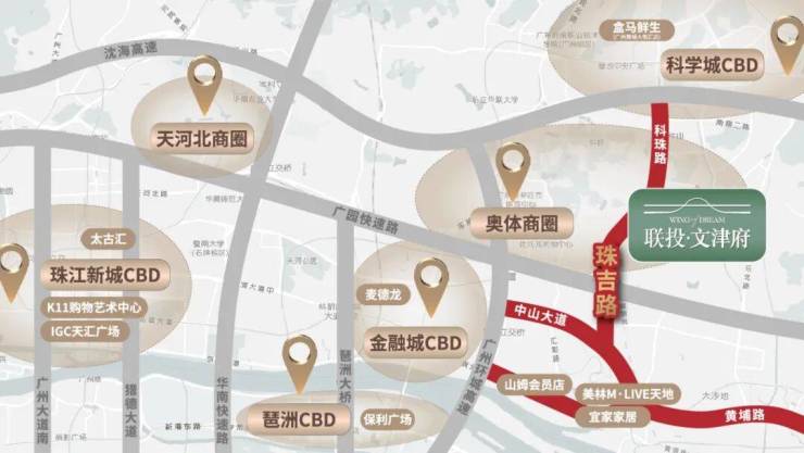 目前吉山村城市更新已启动,珠吉路升级改造将扩建至双向八车道,中山大学附属医院(珠吉院区)、天河党校等项目已开始建设,周边约8万㎡商业用地已规划。优质配套的不断完善,未来将为文津府业主提供更多生活便利。