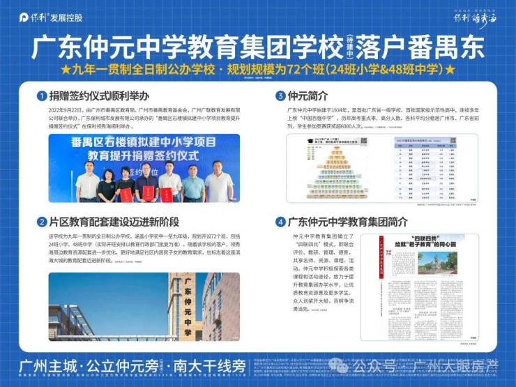 保利领秀海已划入【仲元学校】学区范围,规划开设72班,包括24班小学、48班中学,2025年9月开学
